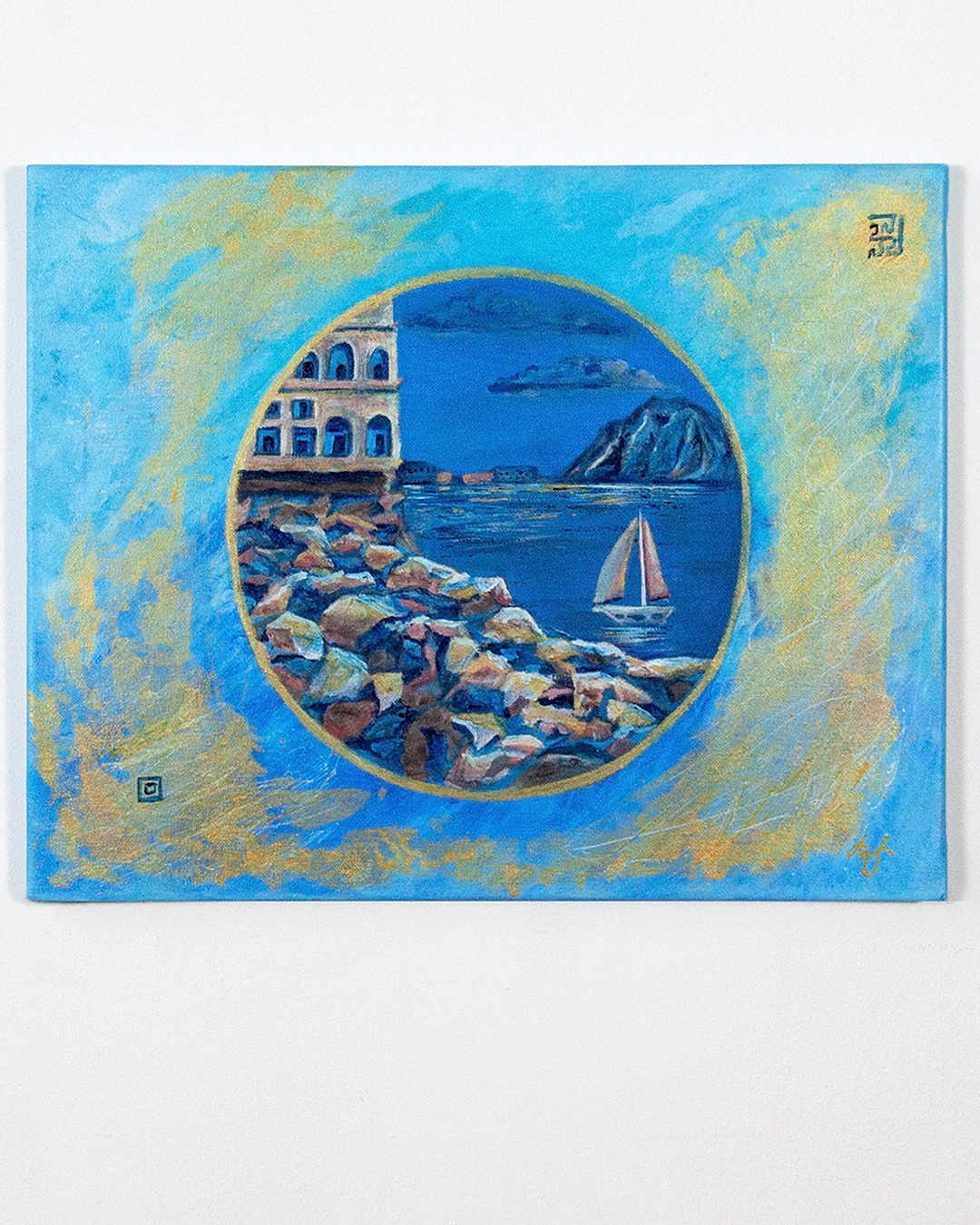 In this work, I sought to capture the shimmering threshold between history and myth. Painted in the modern impressionist style, Amore Sospeso nel Tempo focuses on the golden light of the Neapolitan coast—a light that seems to cling to the crumbling stone of Palazzo Donn’Anna as if trying to preserve a memory.