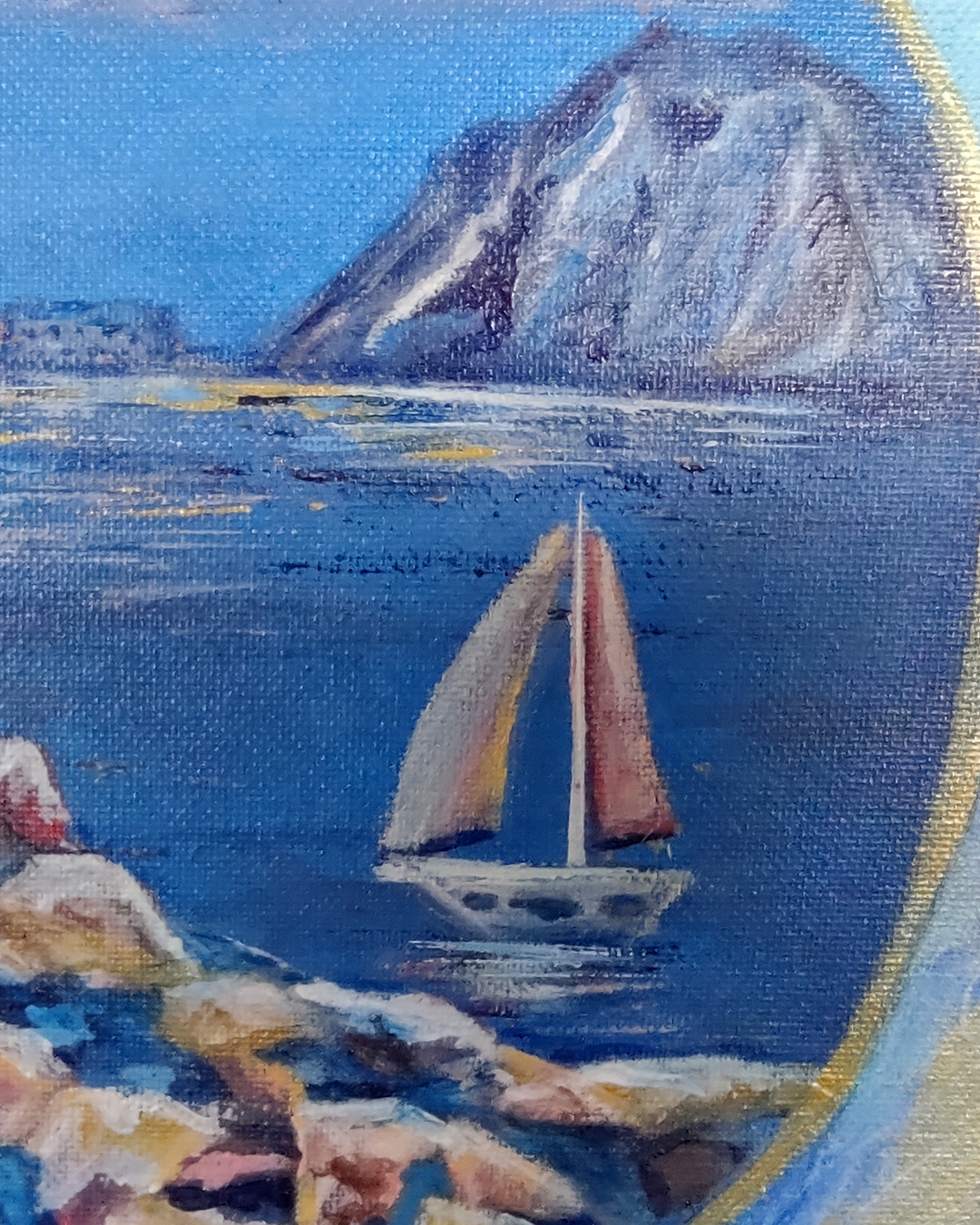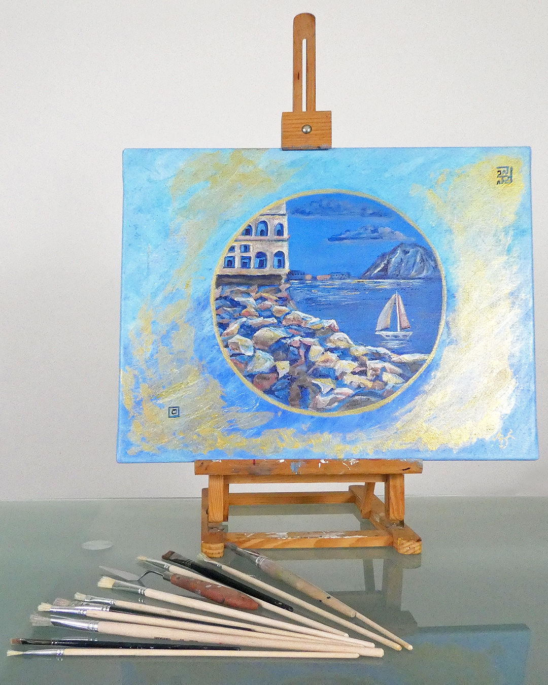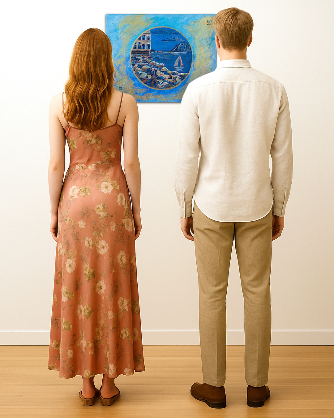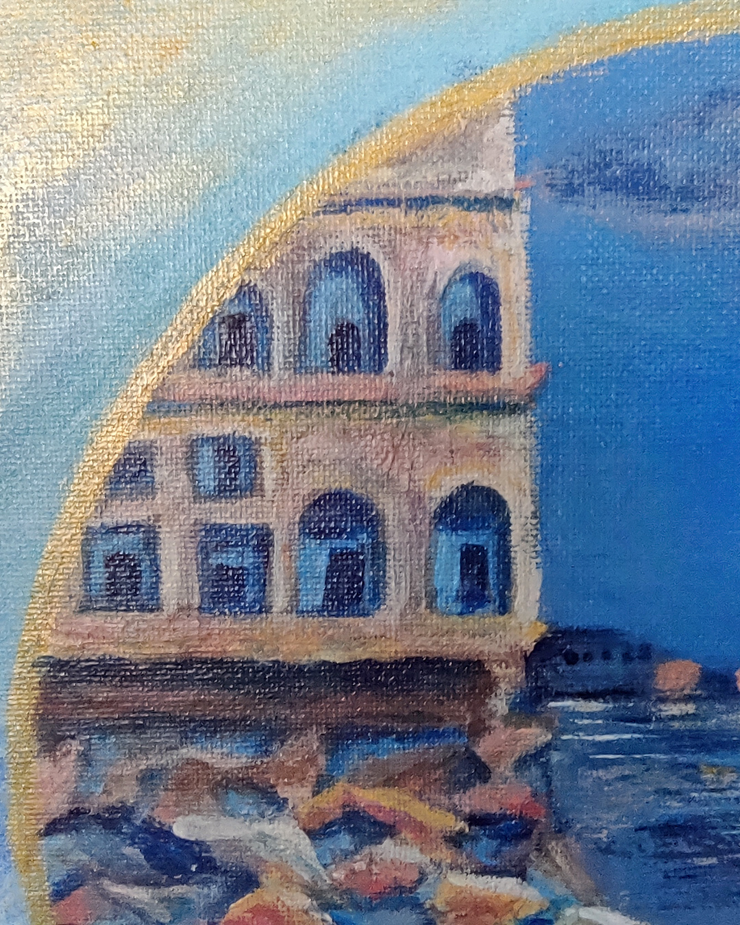 Through the use of light yellow and gold pigments, I have tried to evoke the “Golden Hour”—that fleeting moment where the past feels present. The bold, fractured brushstrokes represent the salt-touched facade, suggesting that while the stone may decay, the spirit of love longing remains “suspended in time.” Like the palace itself, this love story has no ending; it remains an eternal, gilded vigil over the Tyrrhenian Sea.